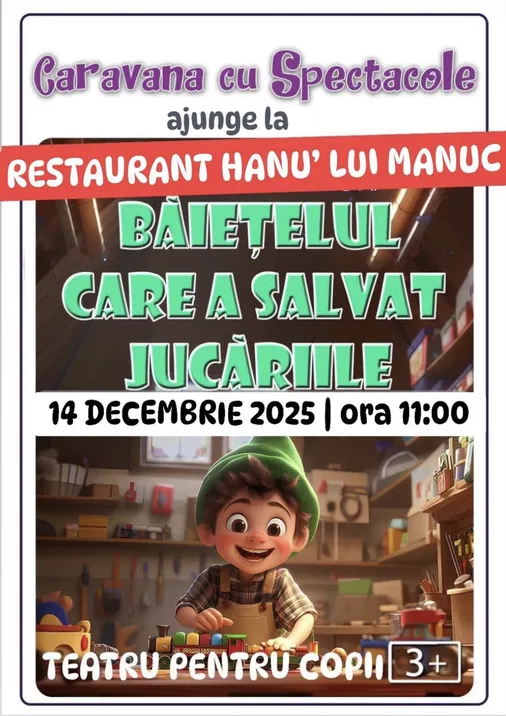 Un spectacol organizat în cadrul programului cultural Caravana cu Spectacole, la Restaurant Hanu’ lui Manuc – Piața Unirii, Strada Franceză 62-64, Sector 3, București.