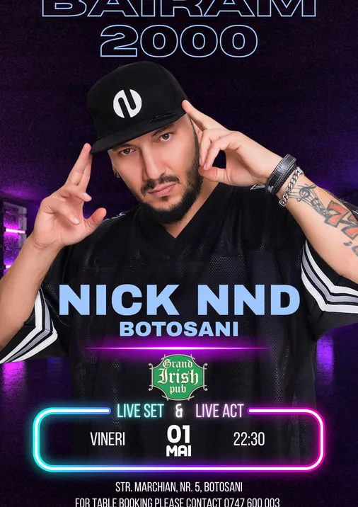 Bilete Botosani: Bairam 2000 cu NiCK NND Live set & Live act - 1 mai, ora 22:30 - Grand Irish Pub