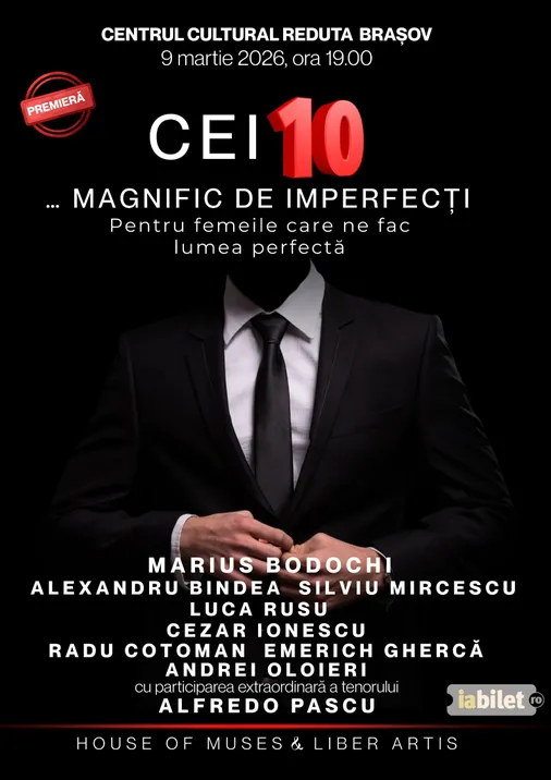 „Cei 10… magnific de imperfecți” este un spectacol-manifest despre relația dintre femei și bărbați, despre admirație, vulnerabilitate, putere și echilibru, spus printr-o combinație rafinată de teatru, muzică și confesiune artistică.