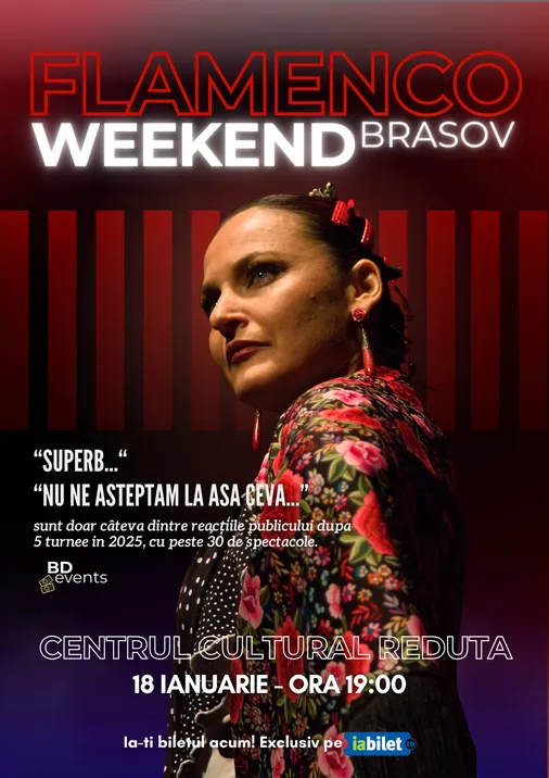 Locația nu este aleasă la întâmplare. Centrul Cultural „Reduta” este renumit pentru că oferă cea mai bună acustică din Brașov, un spațiu unde fiecare detaliu sonor este redat cu o claritate excepțională. Aici, talentul imens al artiștilor se va uni cu excelența tehnică – asigurată de echipamente de top și de o echipă de profesioniști – pentru a vă oferi una dintre cele mai pure și mai puternice experiențe de flamenco live din țară. Fiecare notă de chitară, fiecare inflexiune a vocii Mariei Rubi și fiecare ritm de percuție vă vor învălui, transformând spectacolul într-o experiență cu adevărat imersivă, pe care o veți simți cu toate simțurile. Nu ratați ocazia de a vedea un spectacol de flamenco la un alt nivel, susținut de artiști care trăiesc pentru scenă și pentru aplauzele voastre!