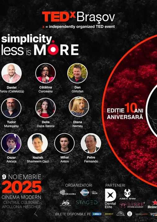 TEDxBrașov 2025 – Simplicity: Less is More te invită la o zi de idei, inspirație și conversații autentice despre puterea simplității.