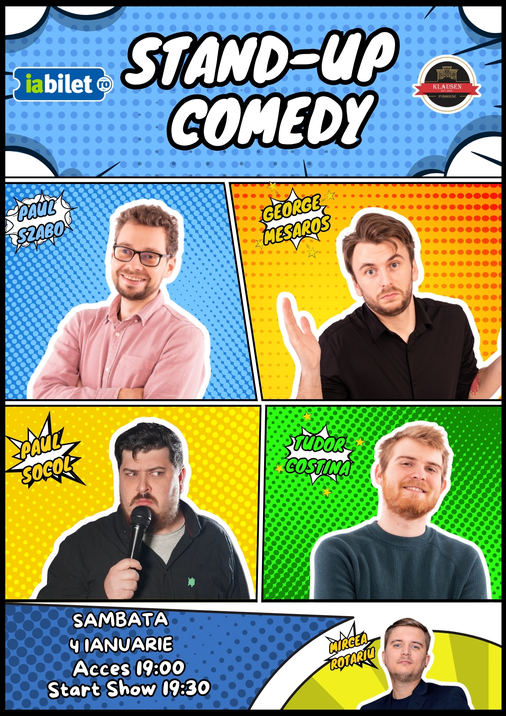 Începe anul nou cu dreptul și vino la un show de stand-up comedy! Ne vedem cu Tudor Costina, George Mesaroș, Paul Szabo și Paul Socol, la Klausen Pubhouse pe 4 Ianuarie.