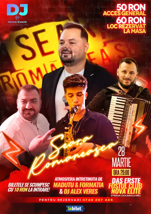 Atmosferă 100% românească: O seară dedicată bucuriei de a fi împreună, cu voie bună și energie pozitivă.