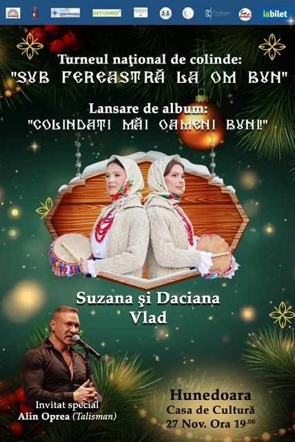 În luna sărbătorilor de iarnă, publicul din România va avea parte de un eveniment cultural deosebit: turneul național de colinde intitulat “Sub fereastră la om bun”, susținut de artistele Suzana și Daciana Vlad, Gemenele Folclorului Maramureșean. Cele două surori îndrăgite vor urca pe scenele a 12 orașe din țară, aducând magia colindelor românești mai aproape de sufletele oamenilor.