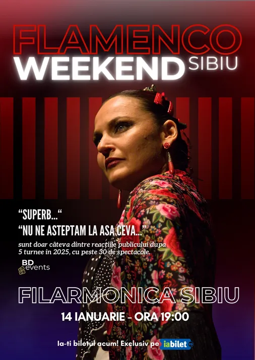Locația nu este aleasă la întâmplare. Filarmonica din Sibiu este renumită pentru că oferă cea mai bună acustică din Sibiu, un spațiu unde fiecare detaliu sonor este redat cu o claritate excepțională. Aici, talentul imens al artiștilor se va uni cu excelența tehnică – asigurată de echipamente de top și de o echipă de profesioniști – pentru a vă oferi una dintre cele mai pure și mai puternice experiențe de flamenco live din țară. Fiecare notă de chitară, fiecare inflexiune a vocii Mariei Rubi și fiecare ritm de percuție vă vor învălui, transformând spectacolul într-o experiență cu adevărat imersivă, pe care o veți simți cu toate simțurile. Nu ratați ocazia de a vedea un spectacol de flamenco la un alt nivel, susținut de artiști care trăiesc pentru scenă și pentru aplauzele voastre!