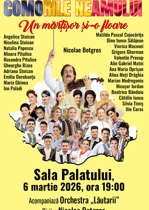 Evenimentul va avea loc pe 6 martie începând cu ora 19.00, la Sala Palatului, și va aduce pe scenă unii dintre cei mai îndrăgiți interpreți de muzică populară din toate zonele țării.