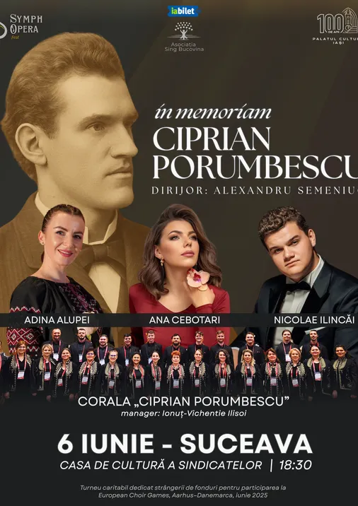 Sub semnul respectului față de patrimoniul nostru cultural, Asociația „Sing Bucovina”, Corala „Ciprian Porumbescu”, în parteneriat cu Palatul Culturii, SymphOpera Fest și Academia Sing, organizează un turneu comemorativ de excepție, în trei orașe: