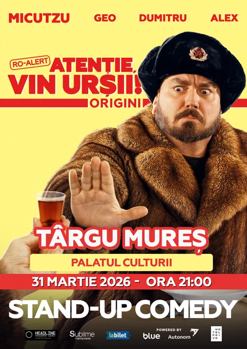 Târgu Mureș: Stand-up Comedy cu Micutzu, Geo Adrian, George Dumitru si Alex Ionita - RO ALERT - “Atentie, vin ursii!" - ORA 21:00